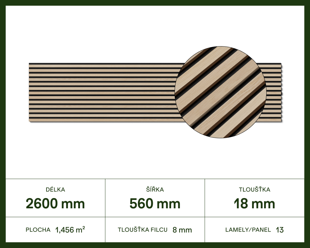 Akustický panel 260x56 cm - Dub natural