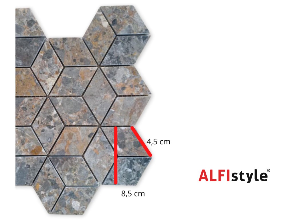 Kamenná mozaika z mramoru, Diamant multicolor, 30,7x27,8x0,9 cm, NH201, Kus, II. Akosť