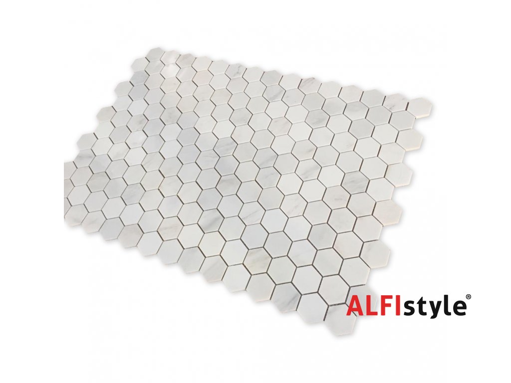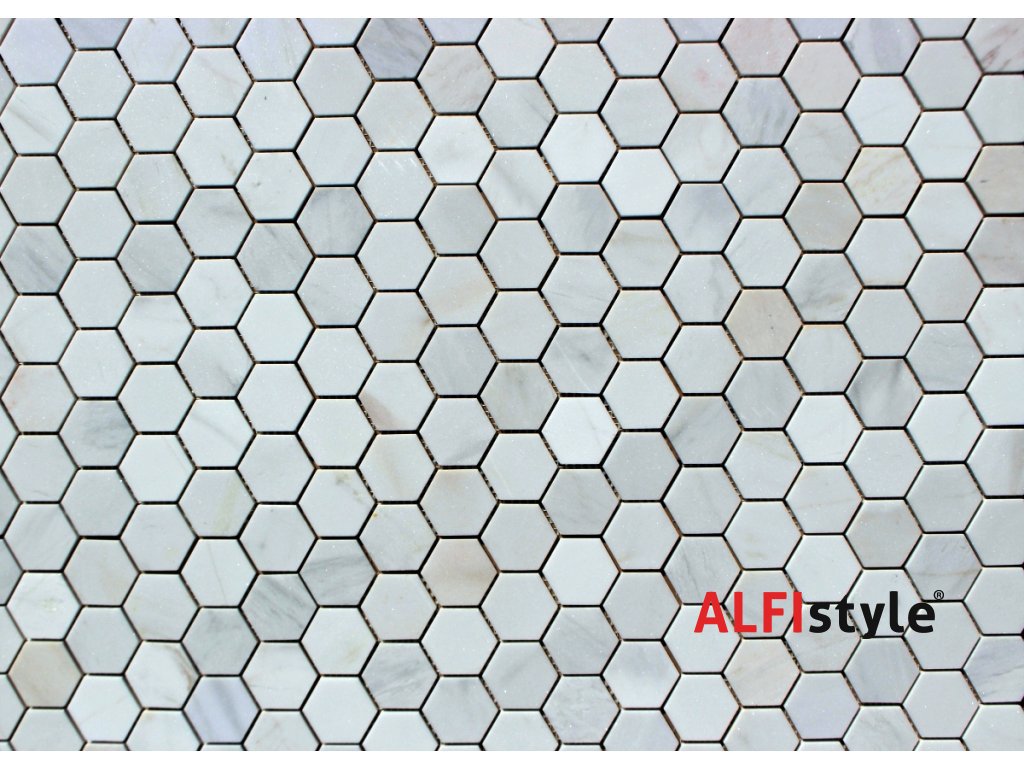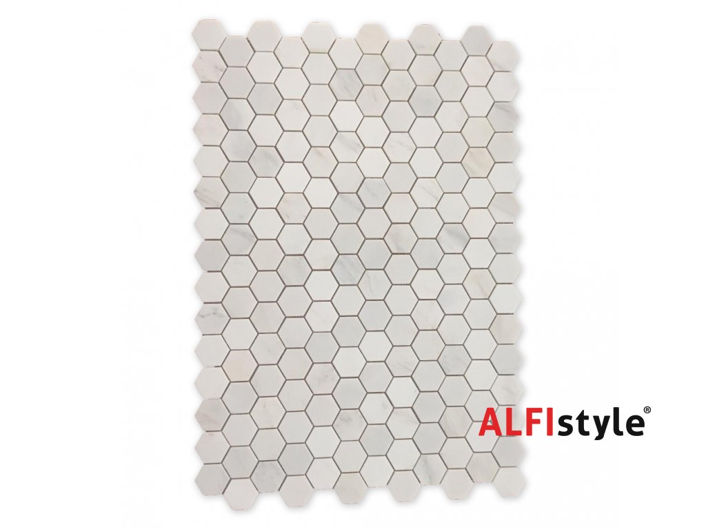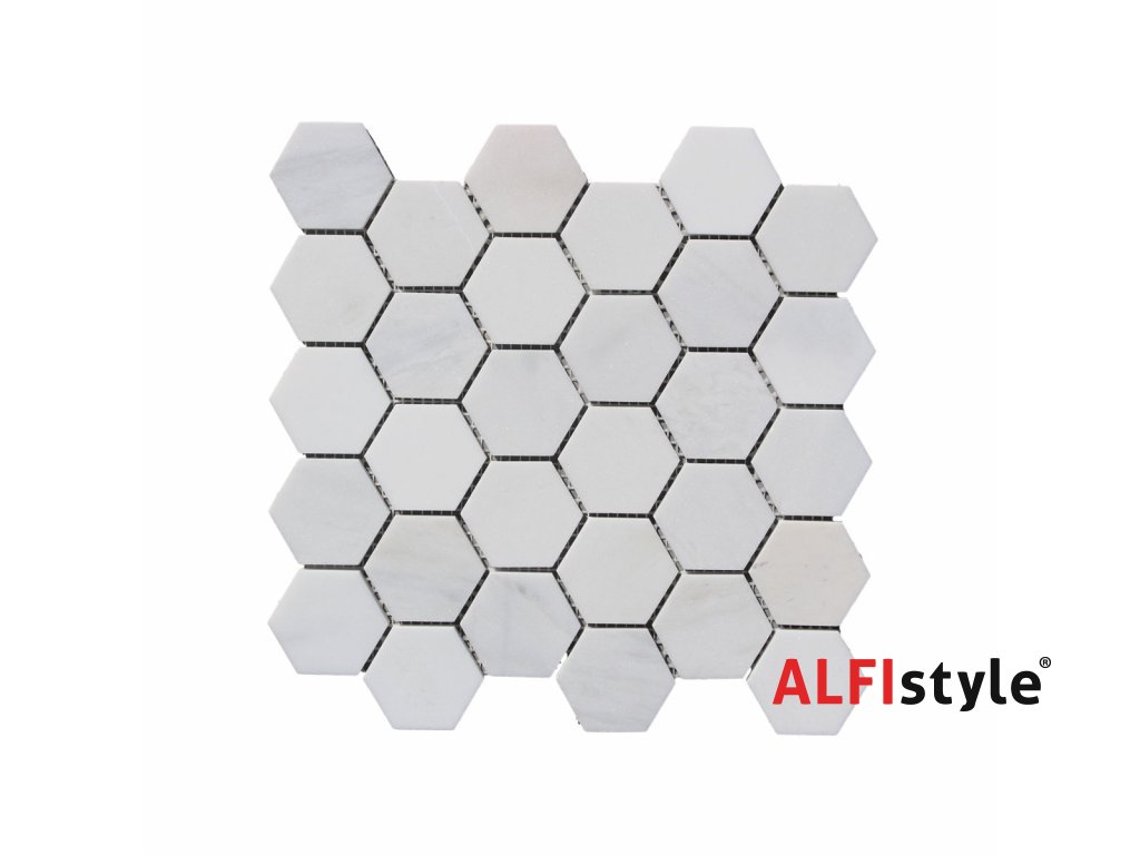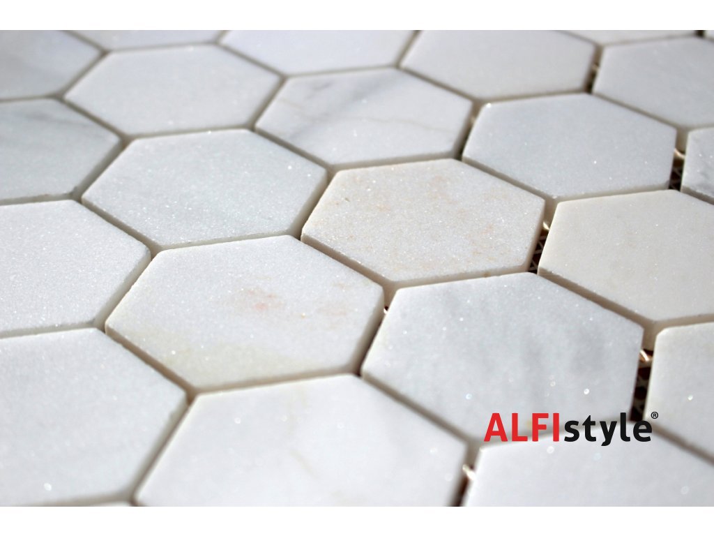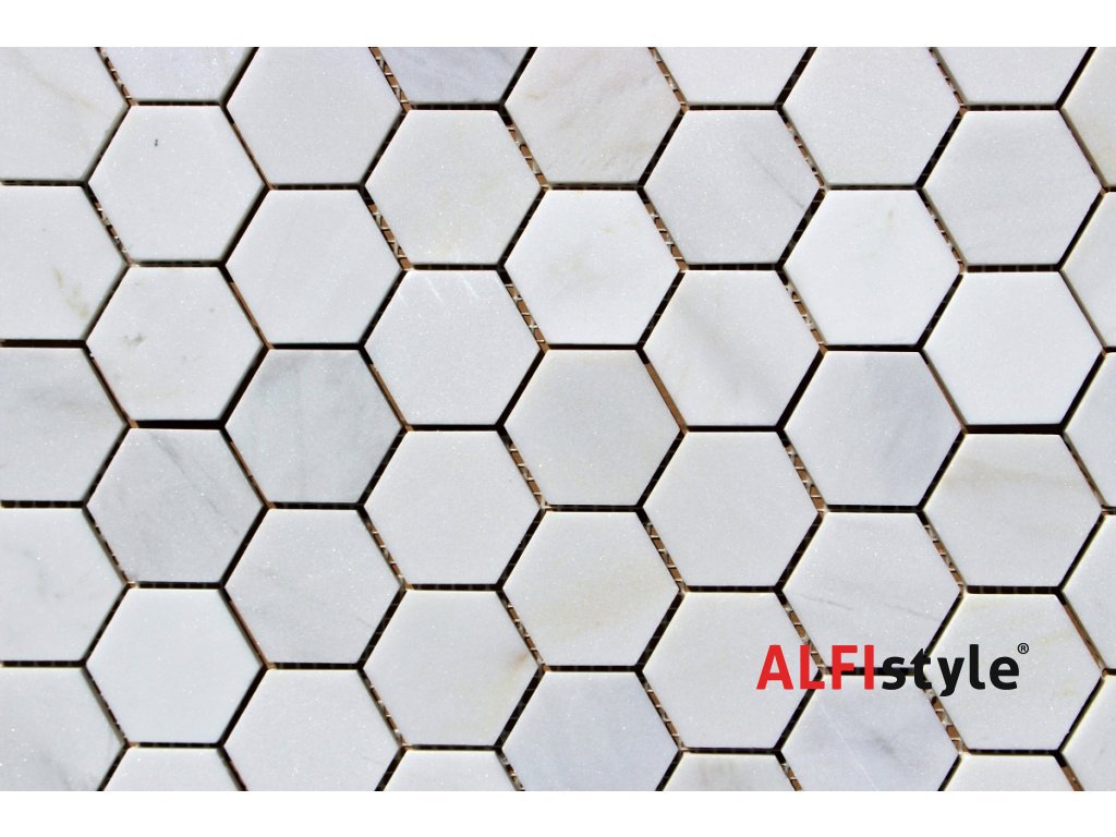 Kamenná mozaika z mramoru, Hexagon milky white, 30,7x30,5x0,9 cm, NH204, Kus, II. Akosť