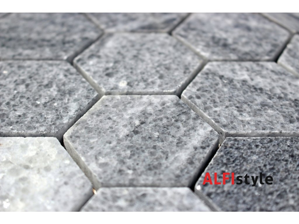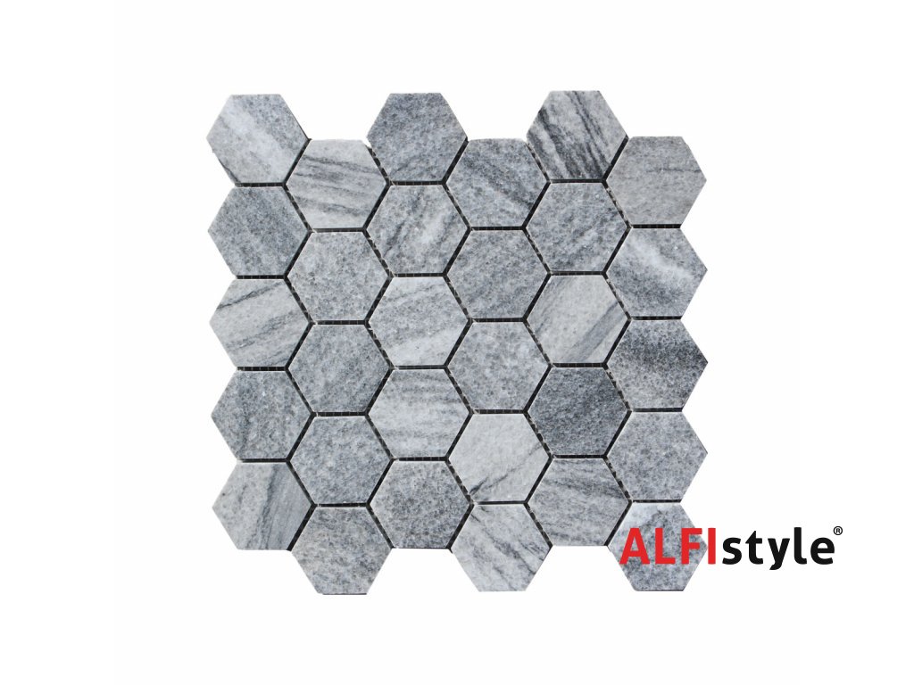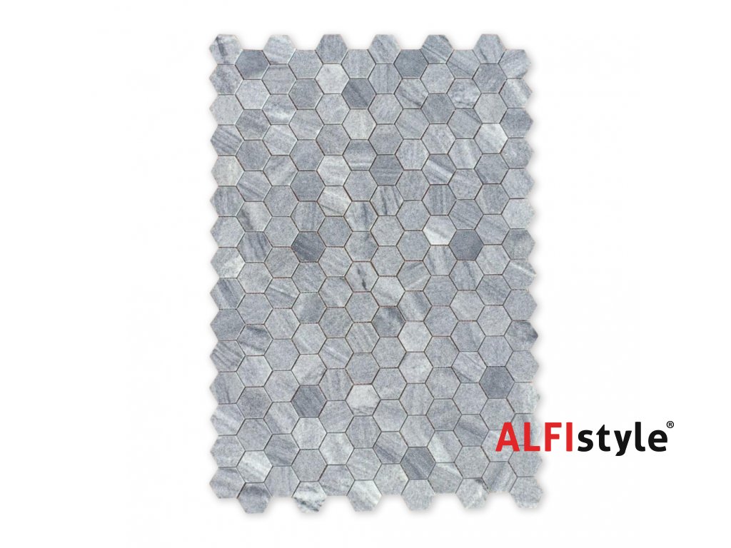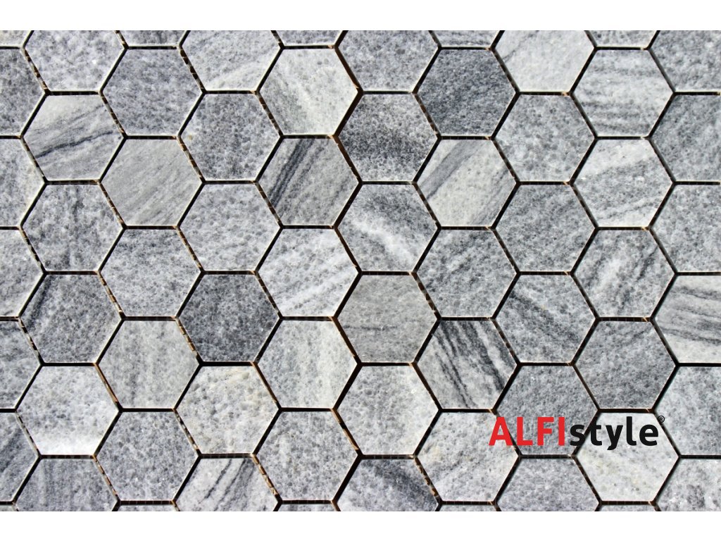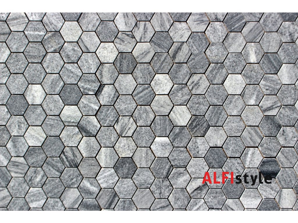 Kamenná mozaika z mramoru NH205, hexagon silver grey slúži pre výzdobu kúpeľní, kuchýň, obývacích izieb a či komerčných priestorov.