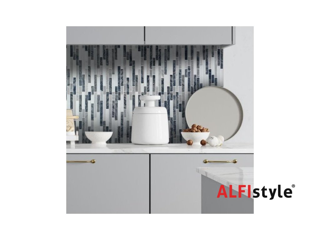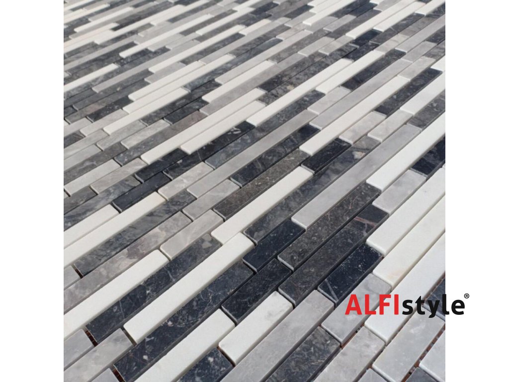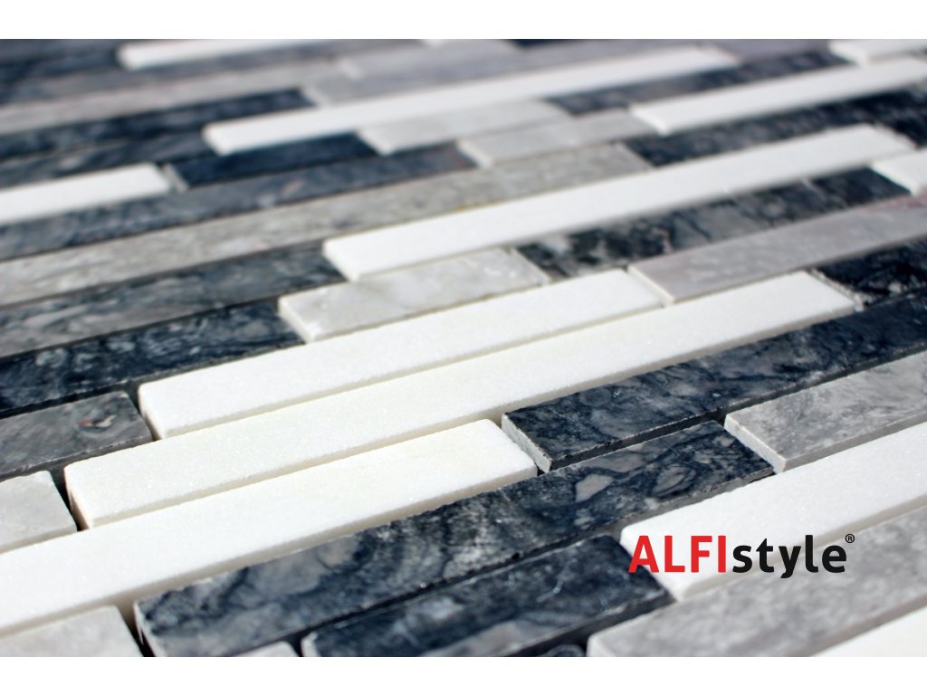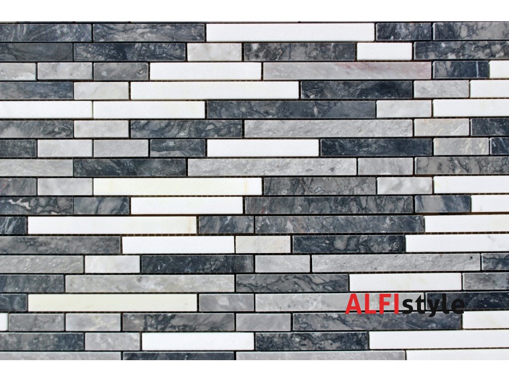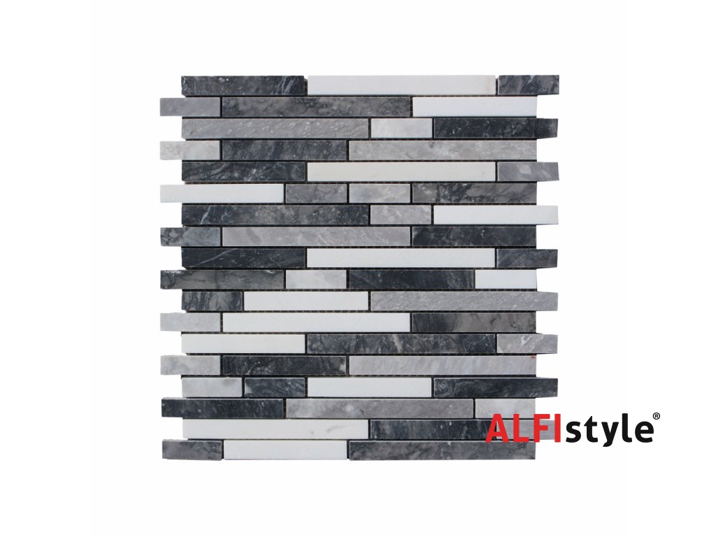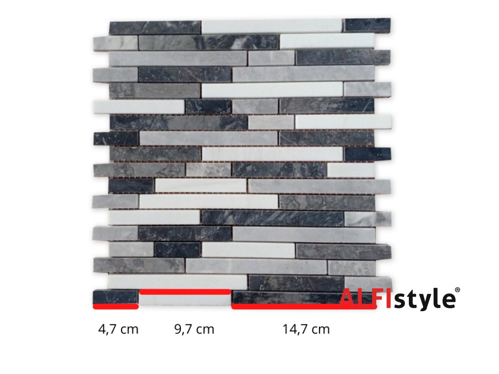 Kamenná mozaika z mramoru NH211, interlocking white and sky vein slúži pre výzdobu kúpeľní, kuchýň, obývacích izieb a či komerčných priestorov.