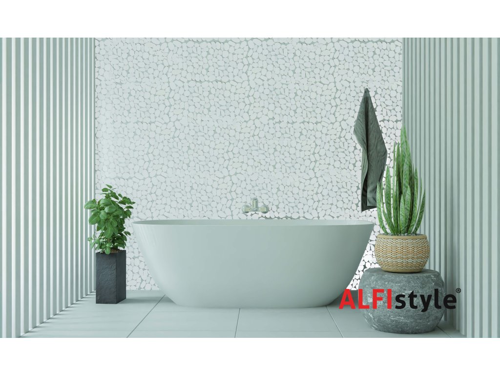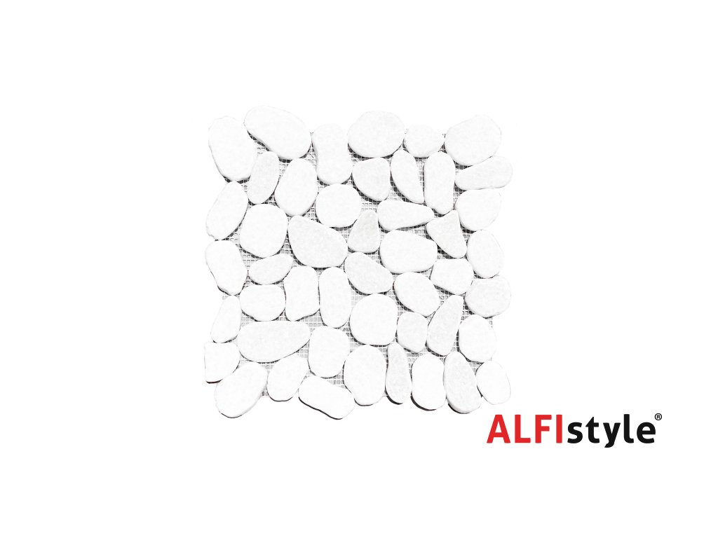 Kamenná mozaika z okruhliakov NH213, crystal white slúži pre výzdobu kúpeľní, kuchýň, obývacích izieb a či komerčných priestorov.