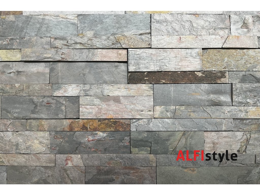Kamenný obklad, bridlice multicolor II, 15x65 cm, hrúbka 0,8-1,5 cm, ES006